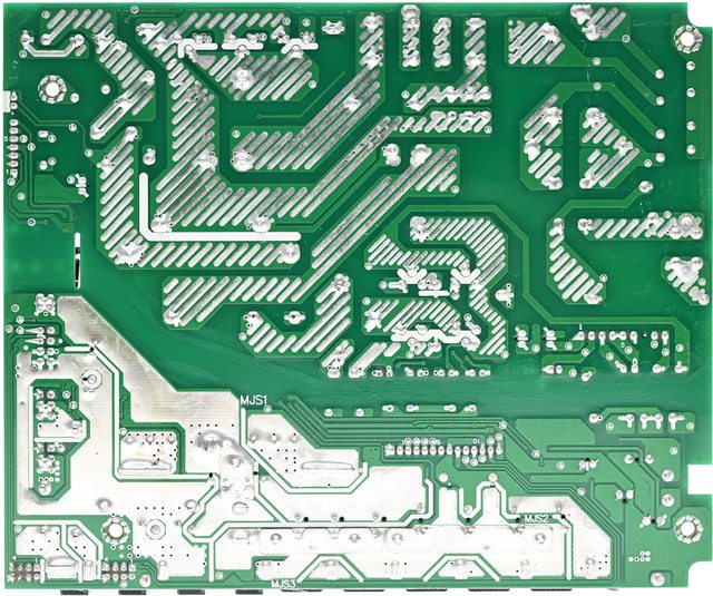 ○電路板背面沒有任何元件,焊點整體做工良好,大電流線路有敷錫處理,12V迴路部分