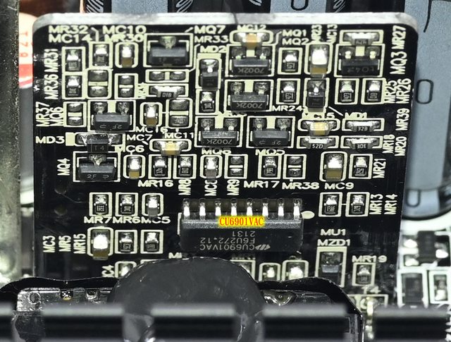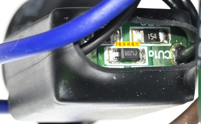 ○交流輸入插座焊點有2個Y電容、1個X電容,X電容底部小電路板有X電容放電IC,焊點沒