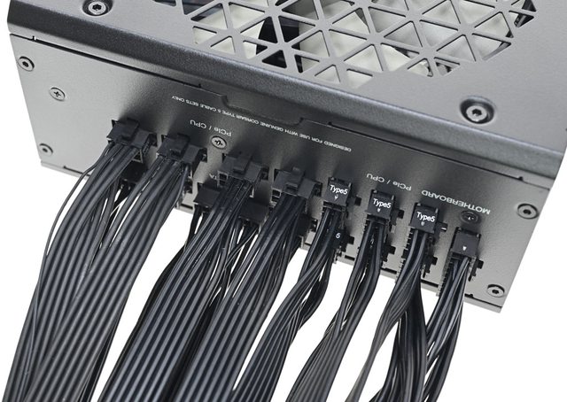 ▼一般電源會在這一面外殼設置模組化輸出插座,因為此款電源採側插式設計,所以什麼