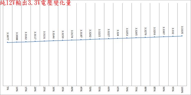 ○偏載測試,12V維持空載,測試3.3V滿載、5V滿載、3.3V/5V滿載的3.3V/5V/12V電壓變