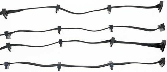 ▼4條SATA接頭黑色帶狀模組化線路,提供16個直角SATA接頭,至第一個接頭線路長度