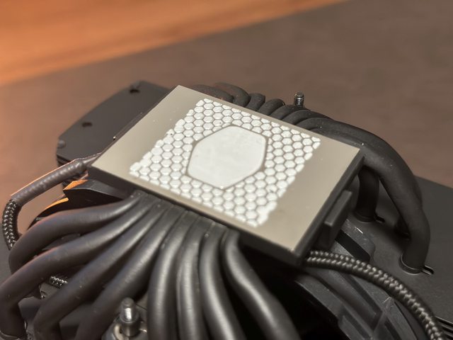 全銅鍍鎳底座面積十分巨大,但8根熱導管緊密地集中在中間位置,或許目的是讓小尺寸