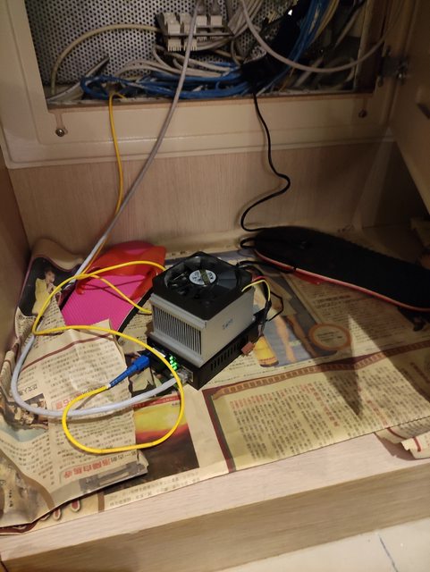鞋櫃裡的網路光電轉換器