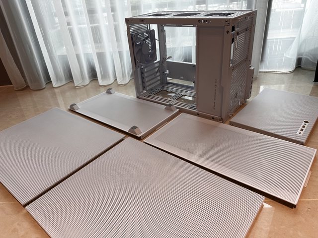 將所有側板拆下,上下左右前共計5片面板,每一片都採用通風孔洞設計,建議有密集恐