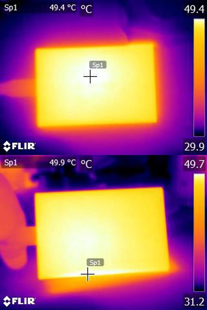 ▼附近沒有氣流流動下進行連續寫入測試的紅外線熱影像圖