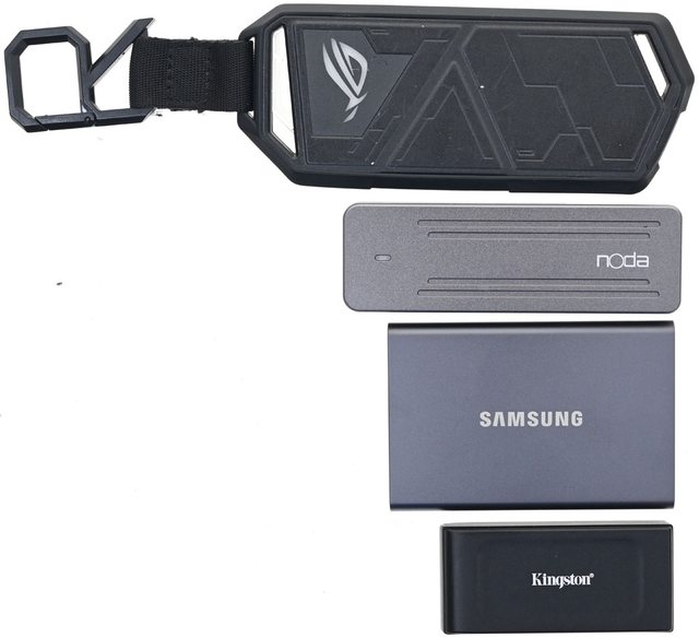 ▼SAMSUNG T7(下二)與ROG STRIX ARION(上一)、noda R9(上二)、Kingston XS1000(下一