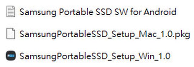 ▼內部預載SAMSUNG PORTABLE SSD軟體,Android版提供連結,Mac提供pkg檔,Windows提