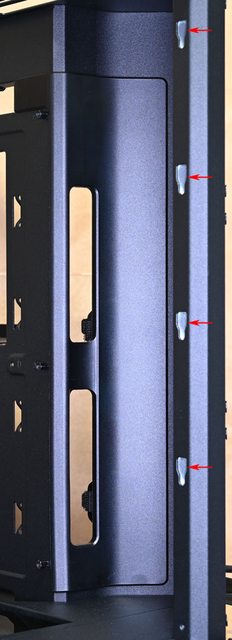 ●免用工具左艙強化玻璃側板及頂部/前方右側斜面/右艙網孔板均額外配置定位銷,安裝