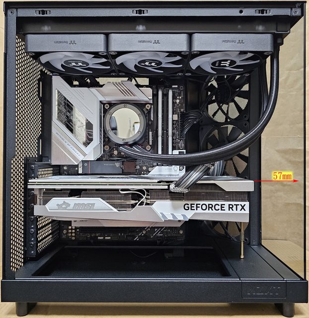 ▼安裝MSI GEFORCE RTX 4070 Ti GAMING X TRIO WHITE(337×140×62mm)時,顯示卡頂