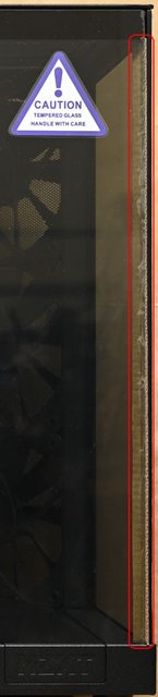 ▼出貨時會在正面及左艙強化玻璃的交界處插入保護用瓦楞紙板(紅框處)