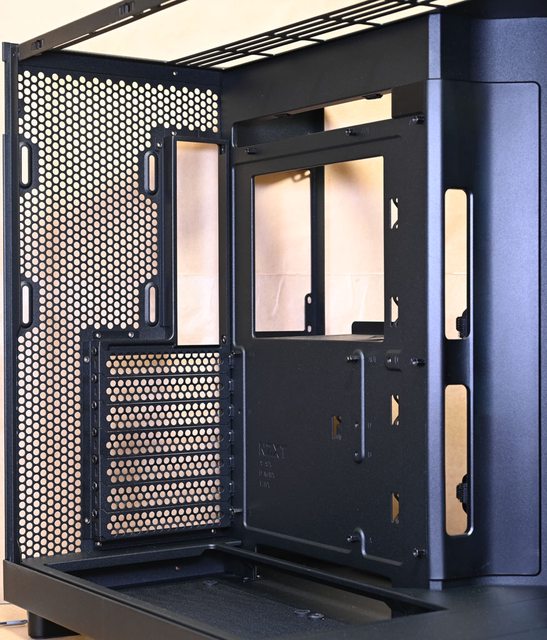 擔心介面卡連接埠會被阻擋,每個擴充槽均採用可重複使用的網狀通風擋板。右艙上方電