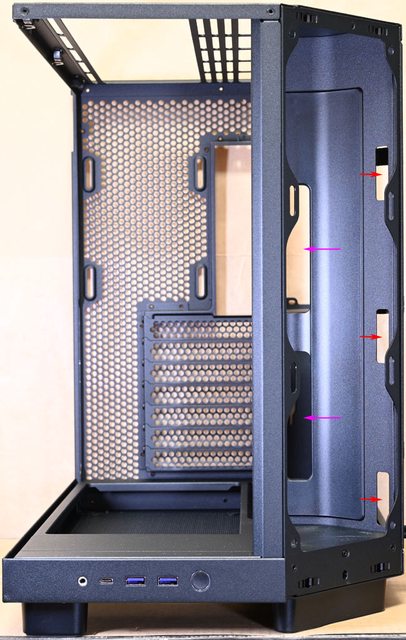前方右側斜面風扇安裝空間:3個120mm(預裝3個機殼版F120Q靜音扇)