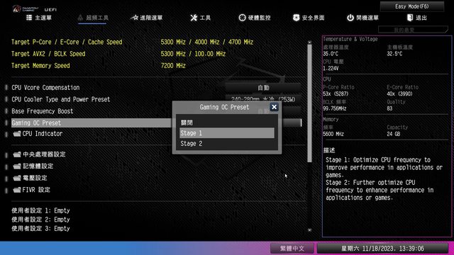 支援超頻以外能透過 GAMING OC PRESET