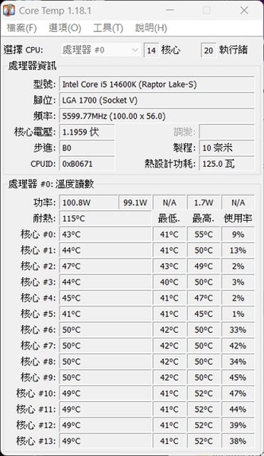 以 14600K 預設為 5.3 Ghz
