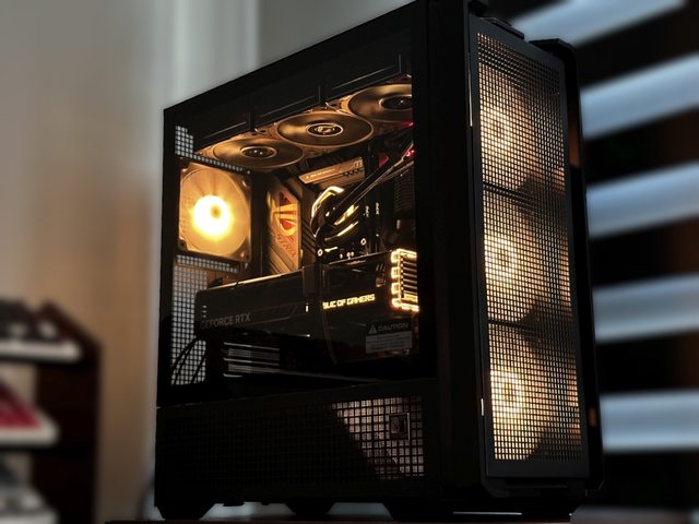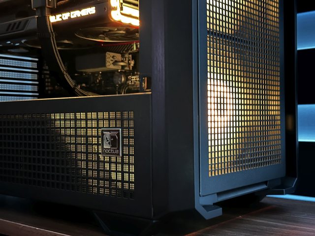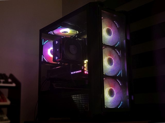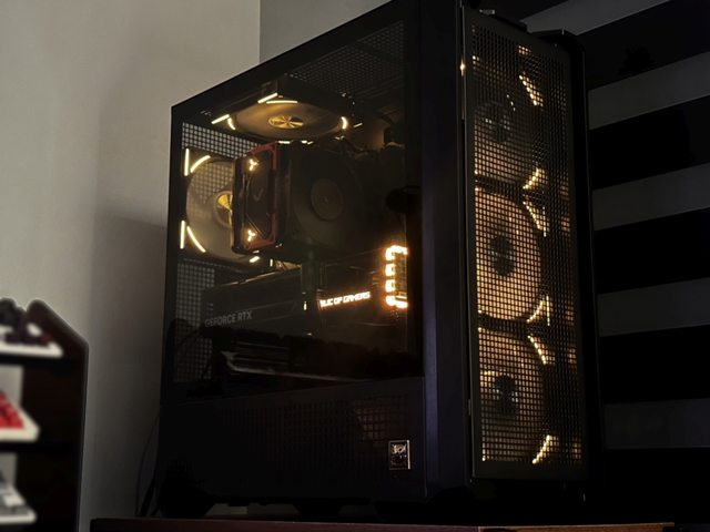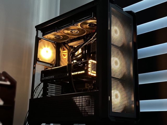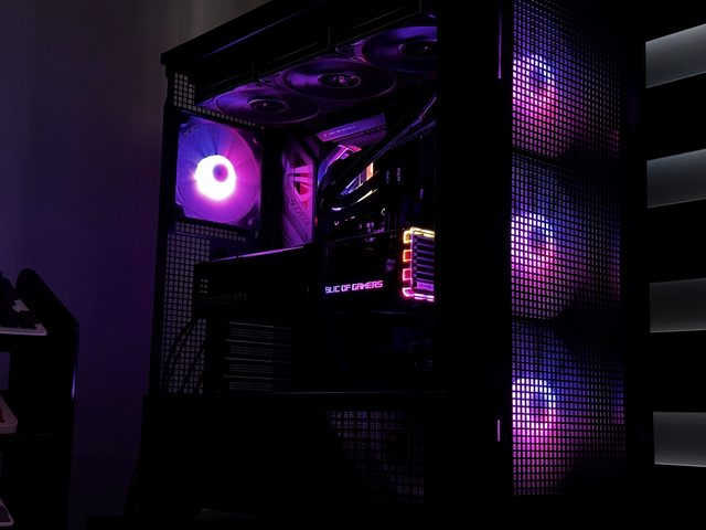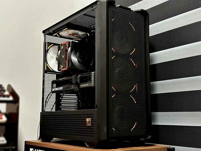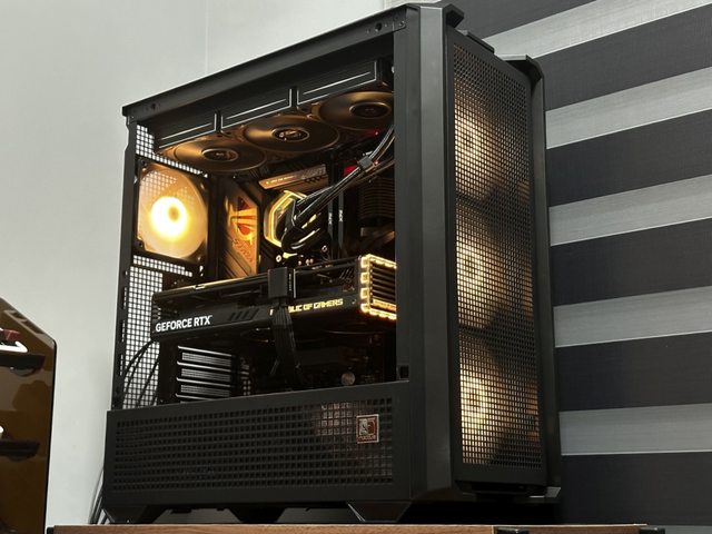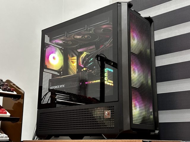 拆掉玻璃側板比較好展示,燈效也改為黑色機殼常搭配的橘色定色光。