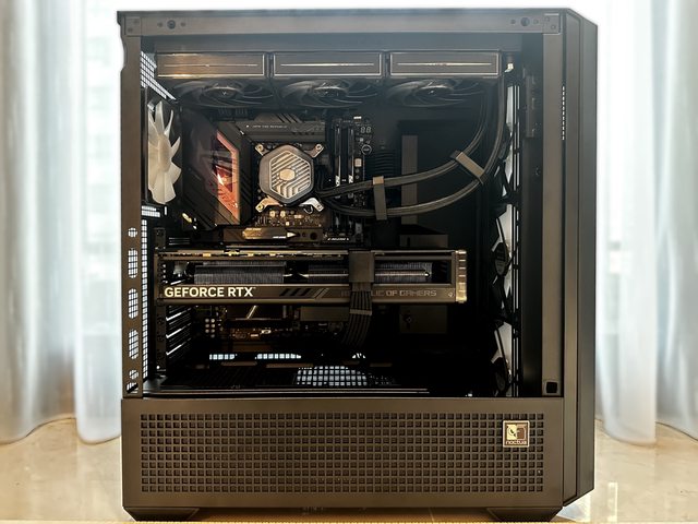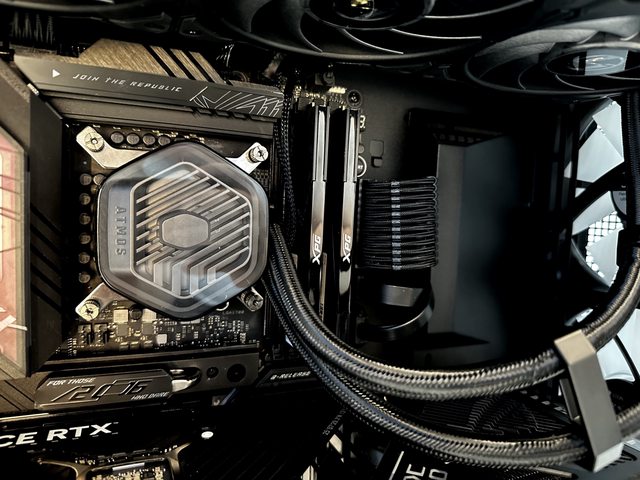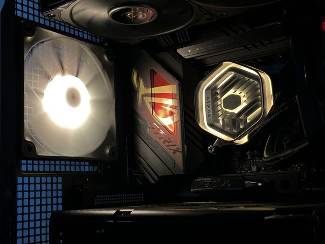 回到正面部分,本次裝機搭配360mm水冷,為酷碼的Atmos 360+聯力P28風扇的混搭風格。