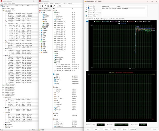 CPU在BIOS內只更改PL2成235W,其餘皆為預設值,顯示卡則設置為P效能模式。