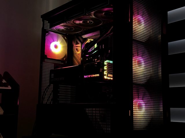 簡單展示幾張關燈後的RGB燈效,個人覺得還好水冷改用無光風扇,不然整體燈效會顯得
