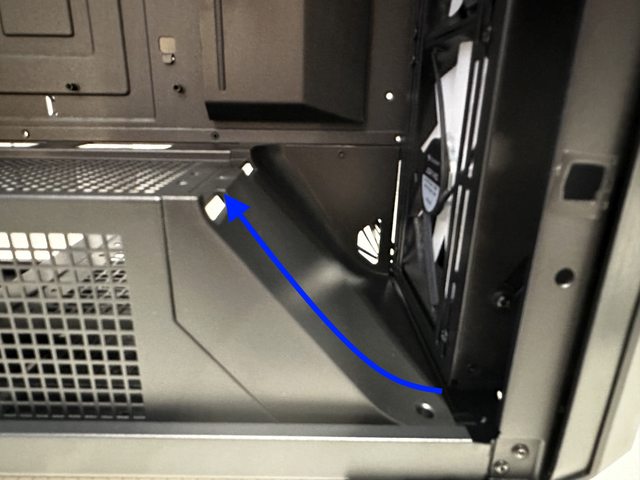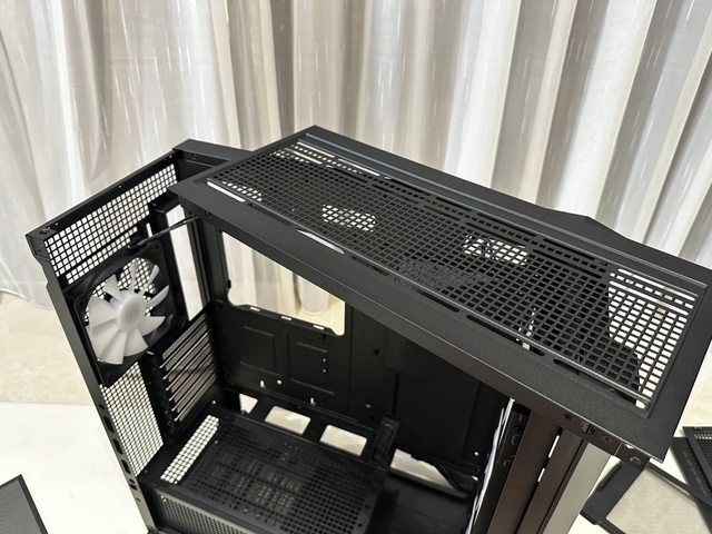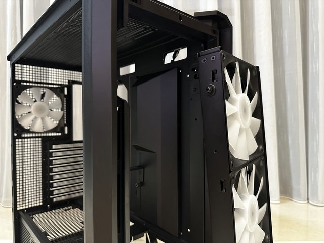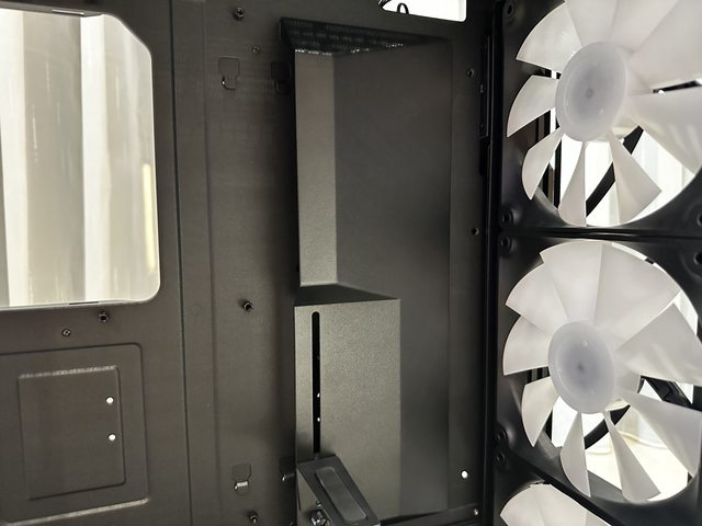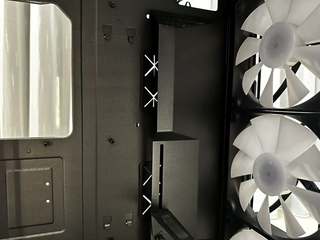 電源倉上方設有可拆除的風扇支架,能安裝最多兩顆12cm風扇。