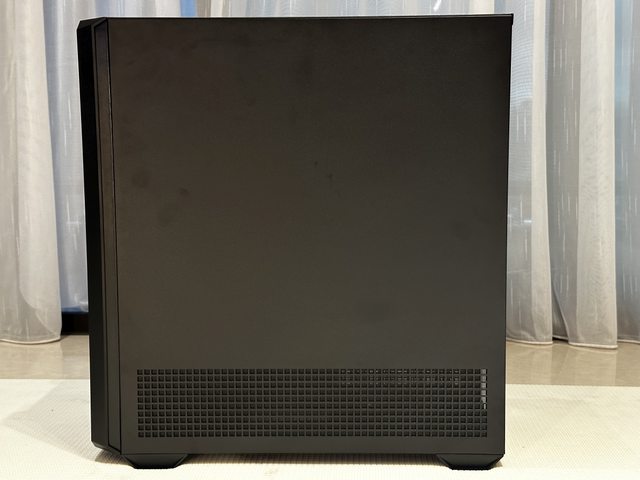 機殼右側板為金屬材質,底部設有通風開孔,側板內部有設置磁吸PVC防塵網。