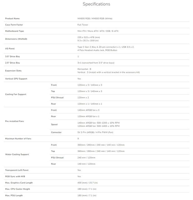 目前MX600有黑白色兩款,且都配有RGB風扇。