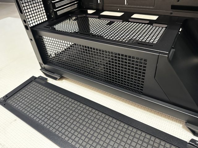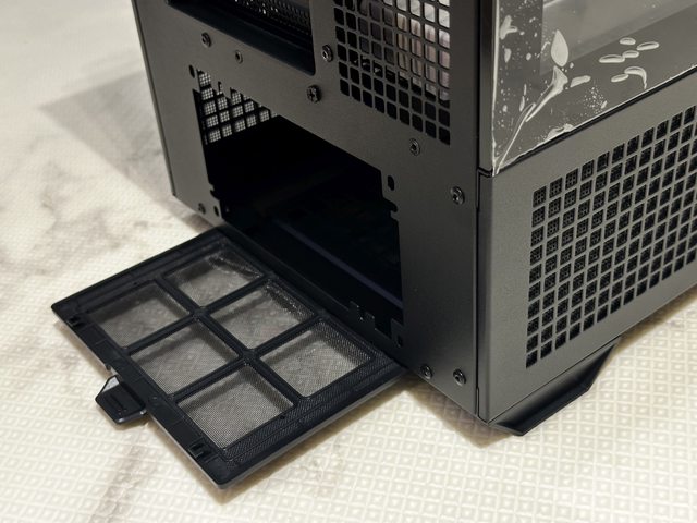 通風小側板也是卡扣固定,內部一樣附有PVC濾網,但非以磁吸固定且目測是無法直接拆