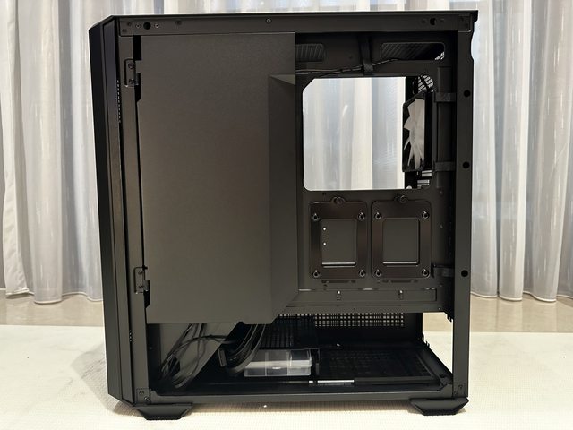 接著拆除左側玻璃側板,MX600 黑色版玻璃側板帶有淺淺深色,下方一樣配有通風金屬側