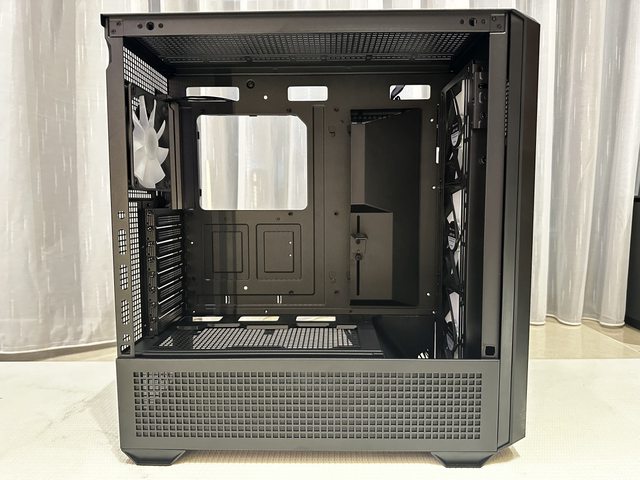 通風面積,實際上如何個人難以測量,但前面板真的有夠通透,後面風扇都被看光了捏。