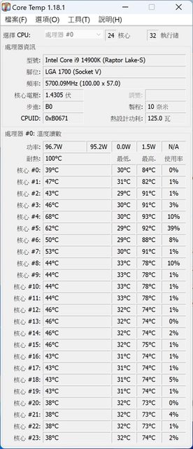 一般工作時不時超過100°C 尚未調用AVX指令集