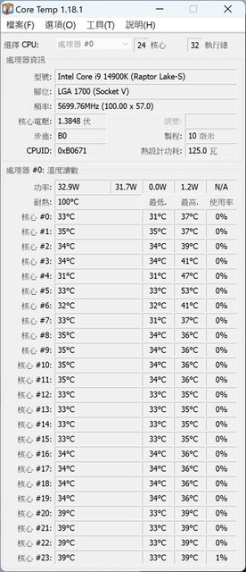 14900K 效能雖然強大工作溫度還蠻燙 CPU 功耗約250W解開PL2會更高