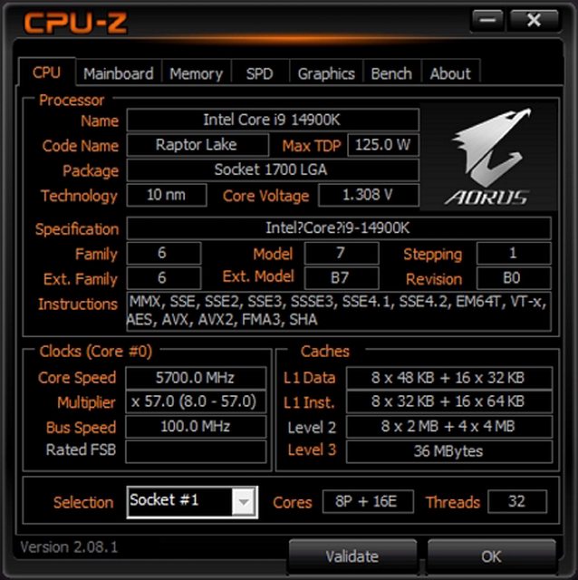 Core i9-14900K 全核 5.7G 工作電壓 1.3V