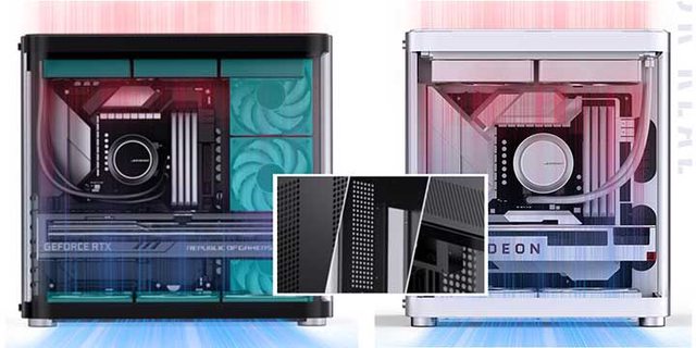 ● 垂直風道設計:對稱下進風→上排風的機殼十分少見,由下而上的風流能夠快速帶走