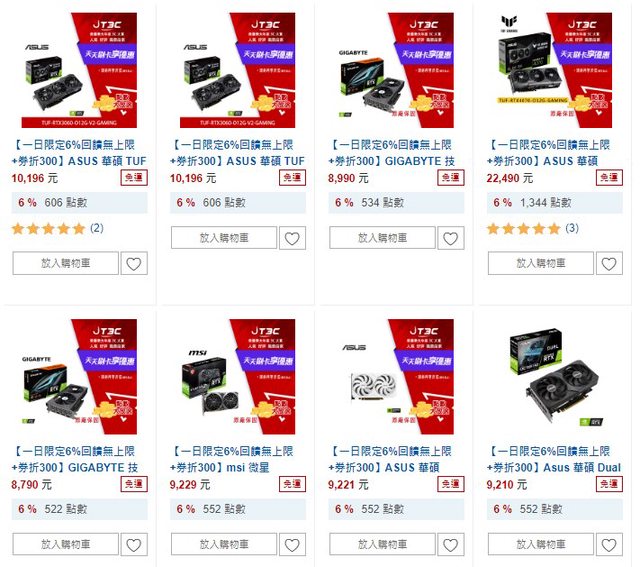 一日限定的6%活動,部分網通跟SSD還有顯卡回饋起來都蠻多的