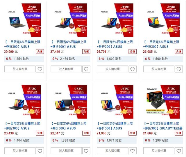 樂天 JT3C的雙12一日限定,全店6%回饋無上限