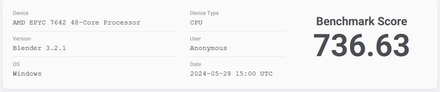 blender EPYC 7642 736比14900K的552快了近30%