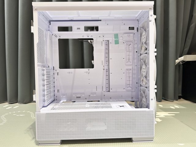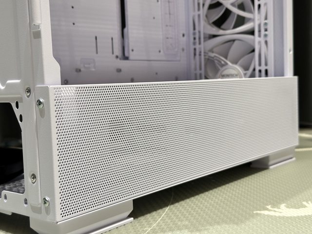 目光拉回到機殼側邊及前方,電源倉及前面板開孔直徑較小,故內部沒有再附防塵網,整