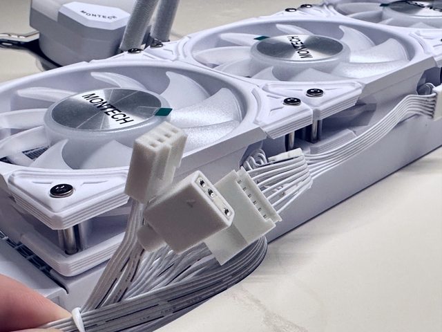 額外優勢為風扇採用串接線材且預先安裝至冷排,可省去組裝及整線的時間。缺點則應該