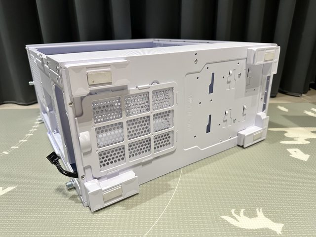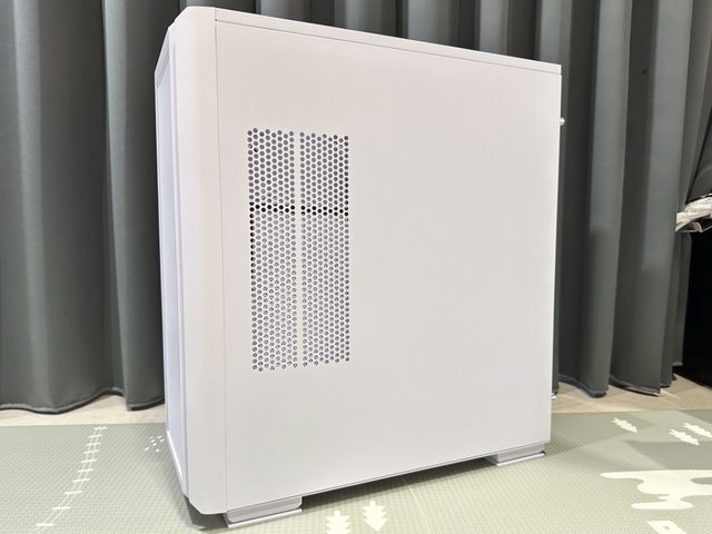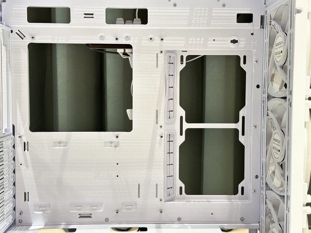 SKY TWO GX側邊能安裝兩顆12cm風扇,故側板處設置進氣開孔,但因孔洞較大,內部有附