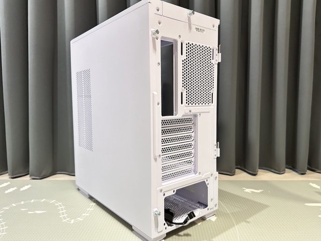 採用電源下置設計,後方提供一個12cm風扇安裝位置,PCI-E有7槽且檔板可完全拆除以更