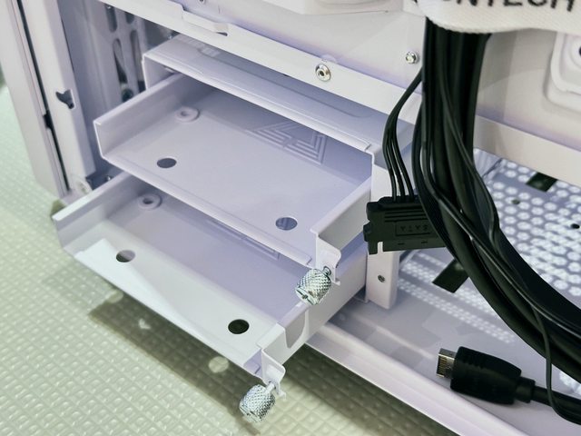 底部硬碟架可安裝2顆3.5" HDD或2顆2.5" SSD,如果全數裝2.5"則含硬碟架、主機板背側
