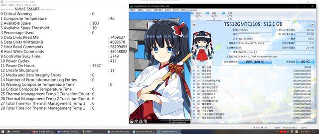 MTE220S前陣子跑過NVMe內建的掃描確定無0E(MTE110S不支援NVMe自檢)