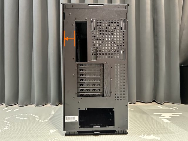 另因支援背插主機板需佔用不少背面空間,從外觀即可見主機板後方已預留了約5cm的寬