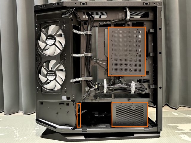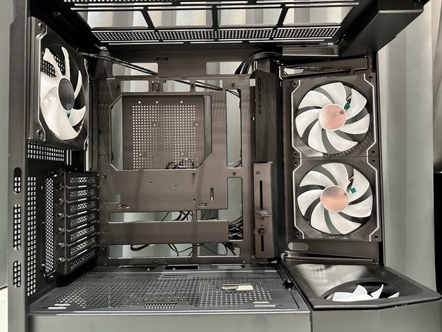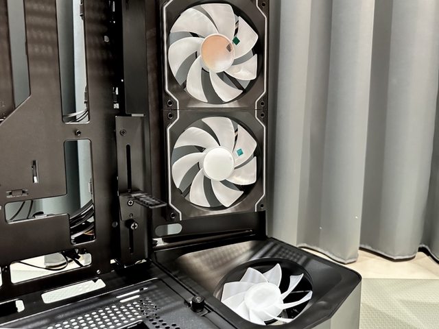 風扇/水冷支架最高能安裝3顆12cm風扇或360mm水冷,電源艙頂部則能安裝2顆12cm風扇或