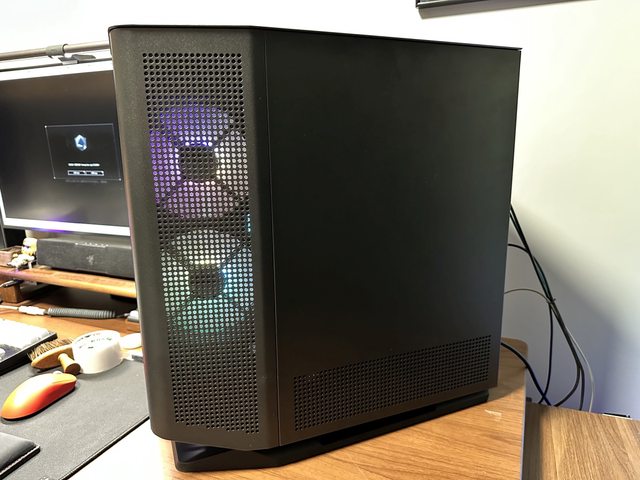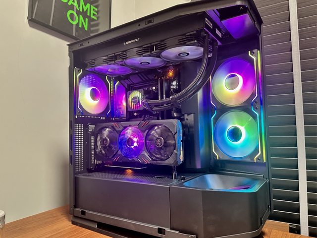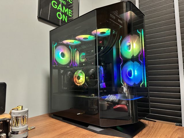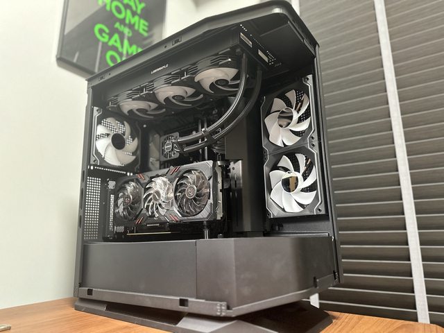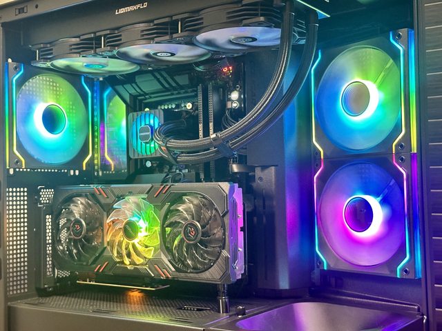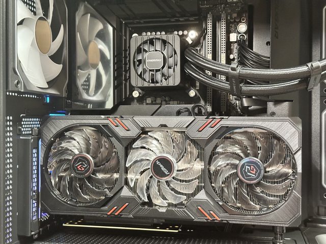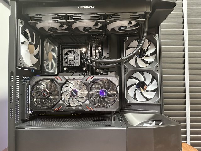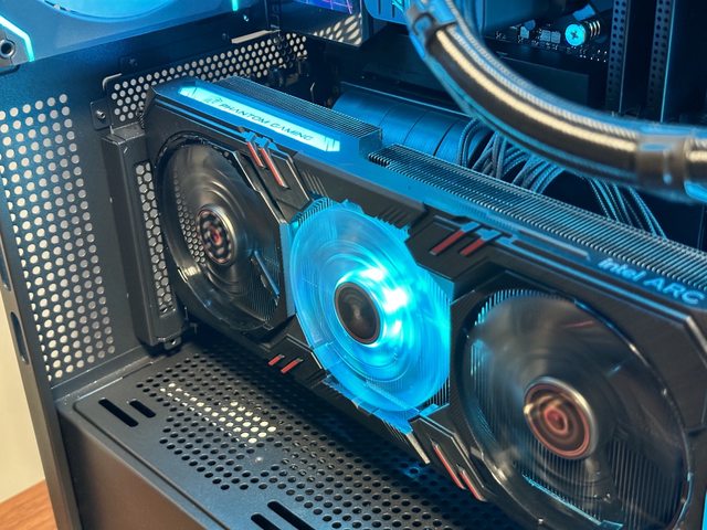 另外本次採用顯示卡直立方式裝機,華擎 intel ARC A770 Phantom的風扇燈效也很適合