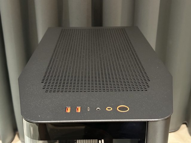 機殼IO設在正上方,採用常見的2A1C配置,另外設有電源開關及燈效切換按鈕,USB孔及