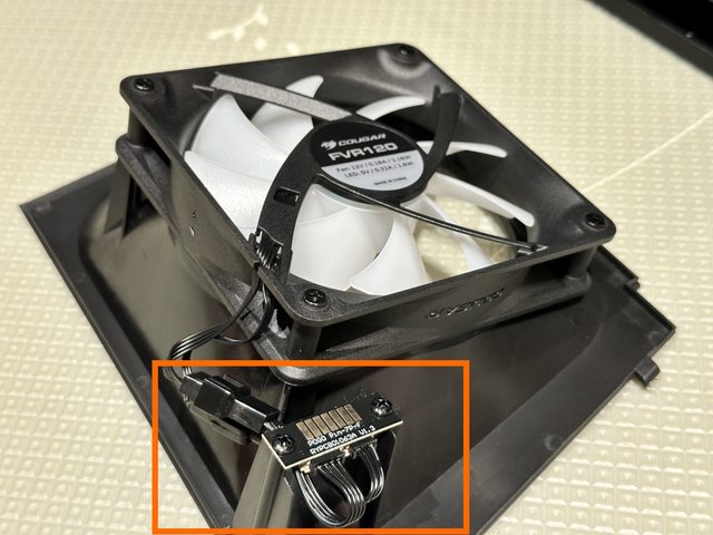 風扇透過一般4P及3P ARGB接頭連接至側邊彈簧針接電位置,使用型號為FVR120的12cm反