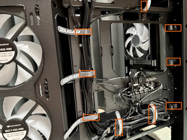 背面共計預設9處魔鬼氈束線帶整線位置,其中3處為CPU電源線使用。