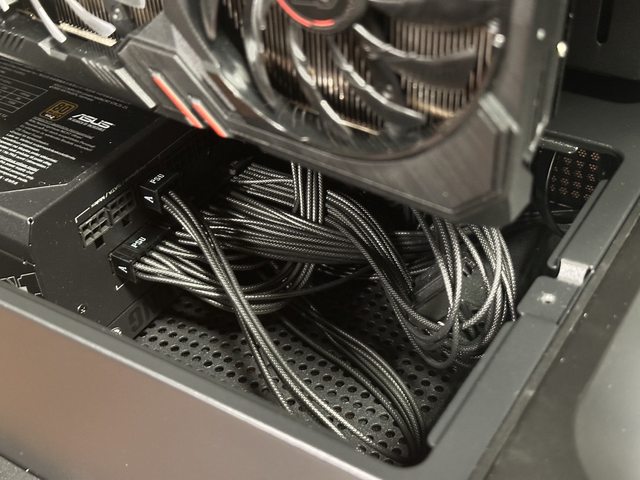 硬碟安裝位置設於電源側邊的好處是電源線可伸縮及擺放的空間十分充足。