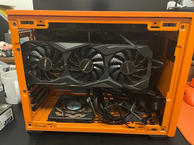 開拆,之前是用直立顯卡的形式去裝, 顯卡後有一些藏線的空間,但下方空間完全被浪費, 底下的銀欣12015風扇也會打到線,所以下半部看起來超空曠。 由於這陣子房間有請師傅來處理壁癌跟重新粉刷,加上台北頂樓灰塵量超級多, 整機也積了不少灰,一併做整理。 https://i.imgur.com/Gg4Ehum.jpeg