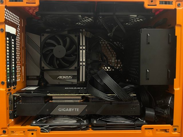 最後裝一下買來之後從來沒用過的側透,效果不錯(雖然會變悶罐), 有跟朋友討論一下風道的問題,比較怕顯卡跟下進風太接近會有影響, 但還是等到體感上有散熱問題再來改善吧。 配置如下: CPU:Intel i5-12490F GPU:GIGABYTE RTX 2080 Gaming OC MB:GIGABYTE B660I AORUS PRO DDR4 RAM:十銓 T-CREATE 創作者系列 CLASSIC 10L DDR4 3200 32GB(16Gx2) COOLING:JONSBO HX4170D PSU:FSP 全漢 金鋼彈 750W SSD#1:PNY CS2140 1TB SSD#2:Micron MX500 1TB(被我丟在前面板的小空間隨意擱置) 以上,簡單分享,感謝大家。 -- ※ 發信站: 批踢踢實業坊(www.ptt-website.tw), 來自: 118.169.0.216 (臺灣) ※ 文章網址: https://www.ptt-website.tw/PC_Shopping/M.1721304208.A.201